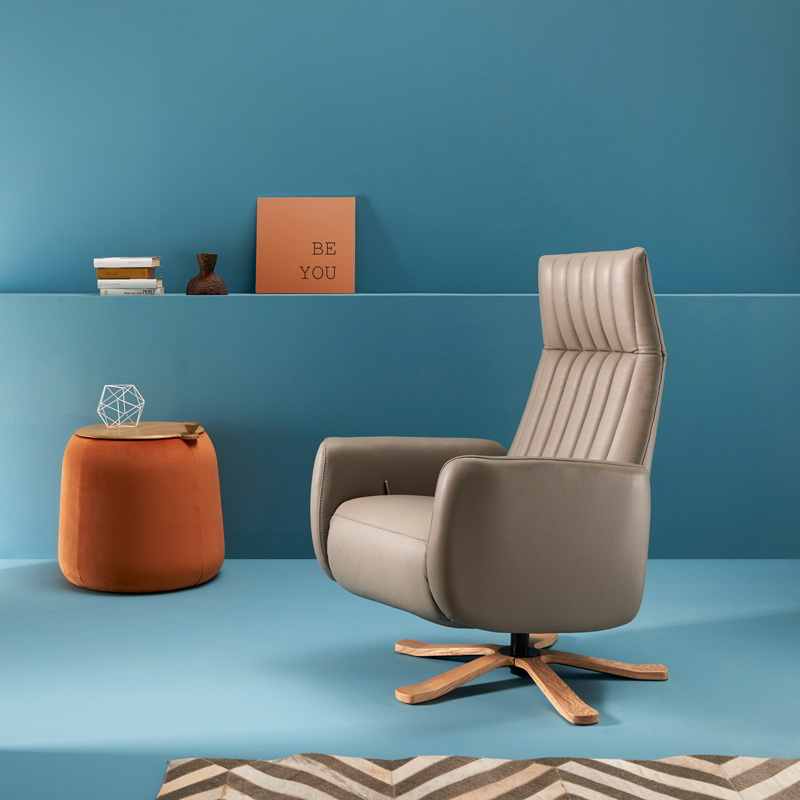 The Tempo relaxer has a very light and modern line. Its padding transports us to the backrests of classic cars. The reclining headboard provides a lot of comfort when we are lying down. Available in manual mechanism or two motors and with different base options.
